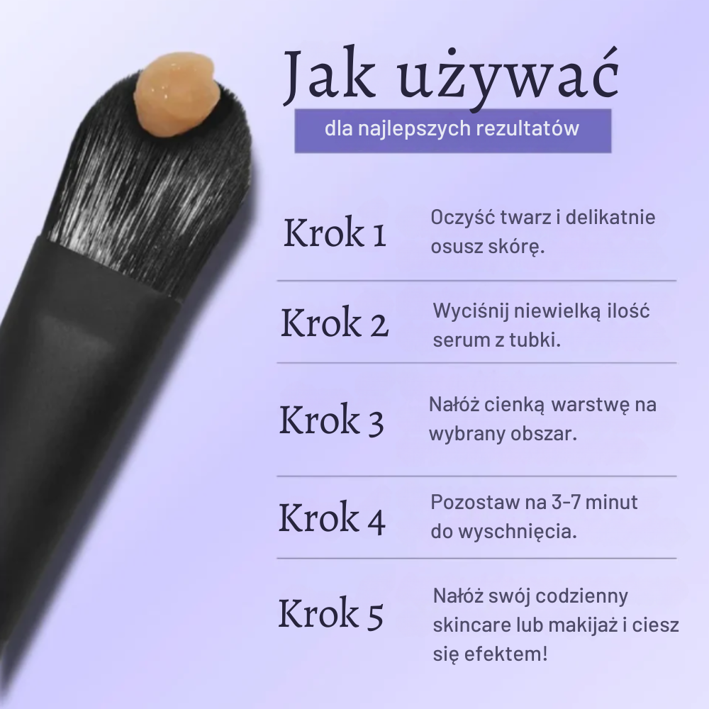 Unikaj używania wcześniej kremów nawilżających lub pod oczy, ponieważ mogą osłabić efekt napinający.